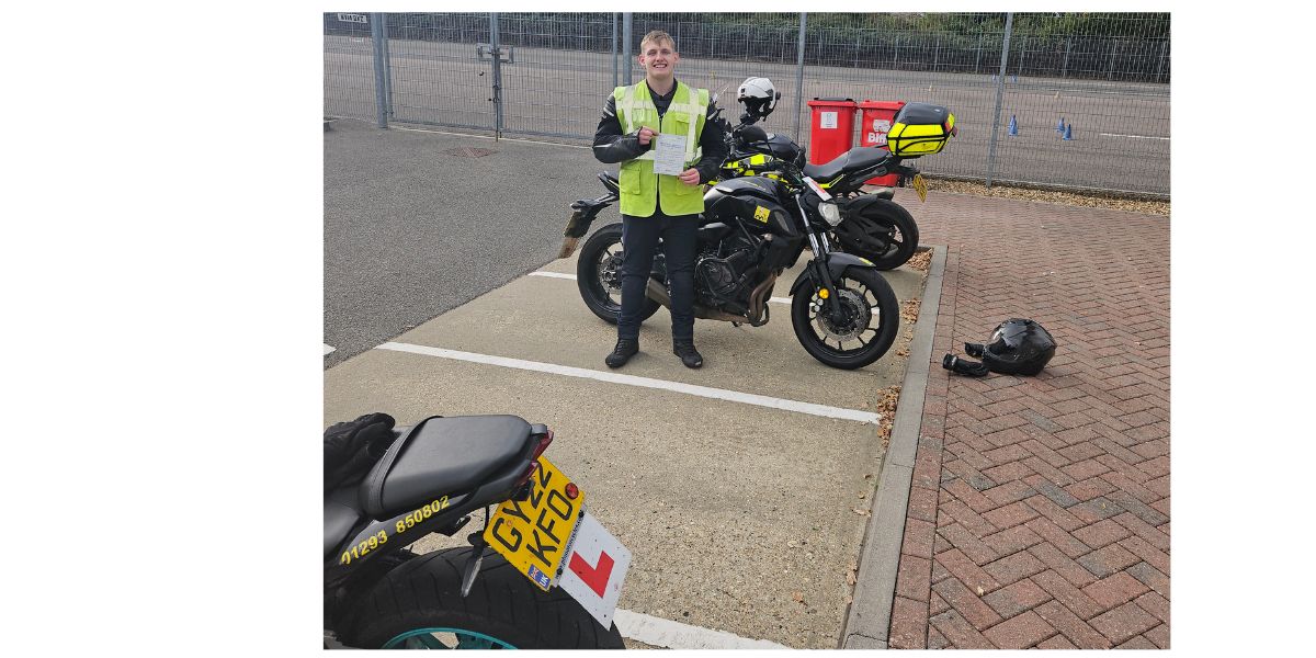 After a couple of Taster sessions and a CBT with us last year, Benjamin from Faygate decided to get himsef booked onto the A2 course before the winter weather sets in thhis year. With just three training days on one of our restricted MT07’s he passed both the Mod1 and Mod2 first time round – well done Ben, a great result for you!