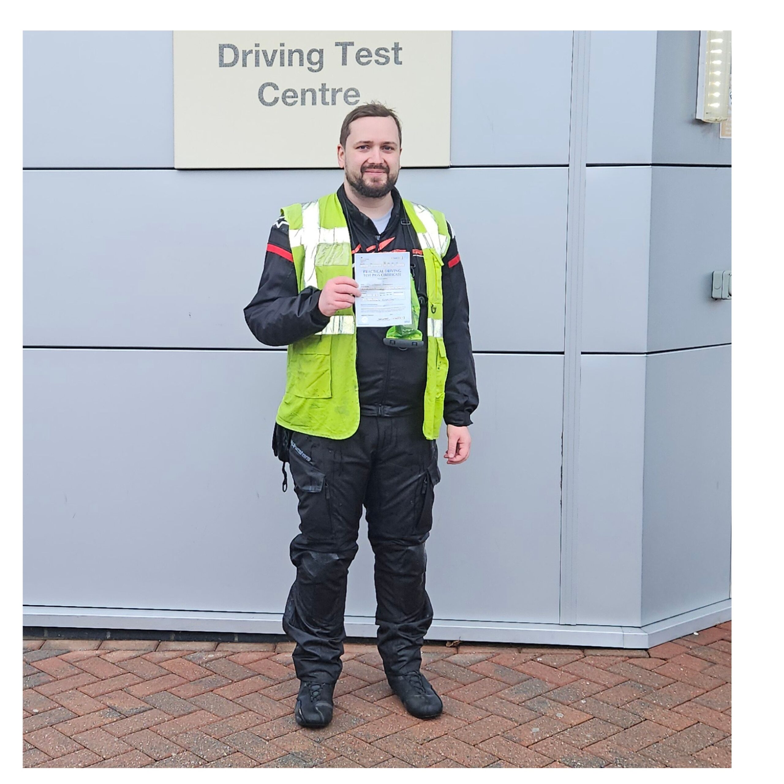 Well done to Matt who did his CBT with us in October and could hardly wait to get the full licence training done, despite the weather today bless him, he leaves with his certificate and a worthy smile!