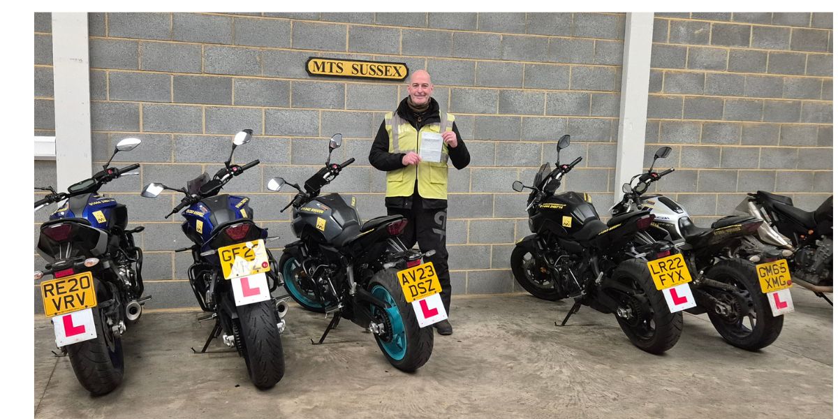 Well done to Matt Jones of Woking, having done an MTS Taster with his mate, the biking bug certainly took hold of them both, they got onto the CBT with us as soon as they could, closely followed by the theroy and DAS course! Now Matt leaves us with a smile and certificate, and he is looking forward to many test rides including one of our firm favourites, the Triumph Bobber !!!! All thats left is for his mate to get time off for his tests than we will no doubt be putting the kettle on for them to return showing off their new bikes!